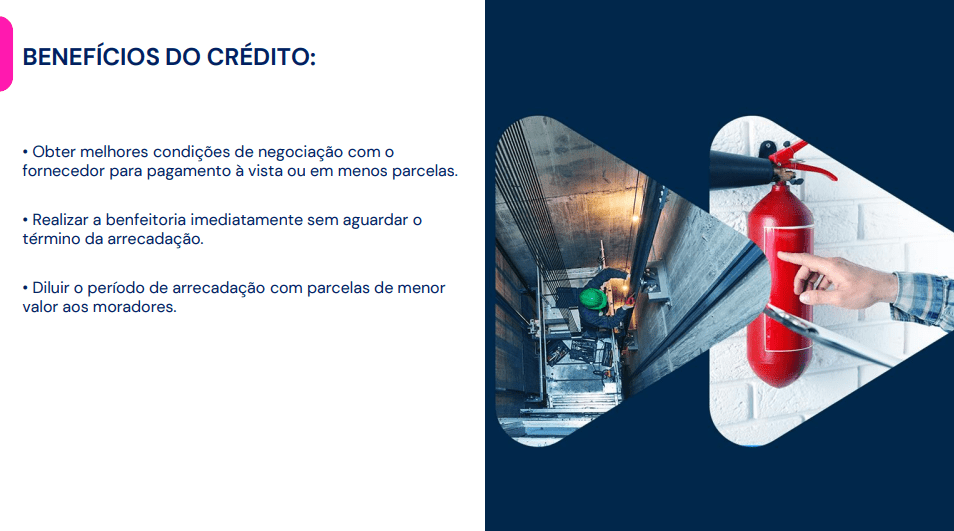 E o melhor não precisa de garantia ou fiador. O tomador do crédito é o próprio condomínio.