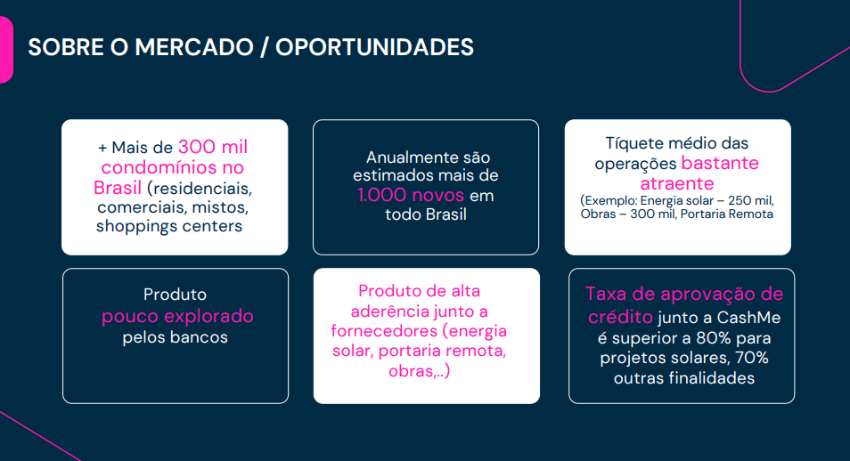 Se você tem como cliente gestores de condomínios, não pode deixar de apresentar esta linha de crédito exclusiva. Com a CashMe, é possível tirar os planos do papel mesmo sem ter dinheiro em caixa.